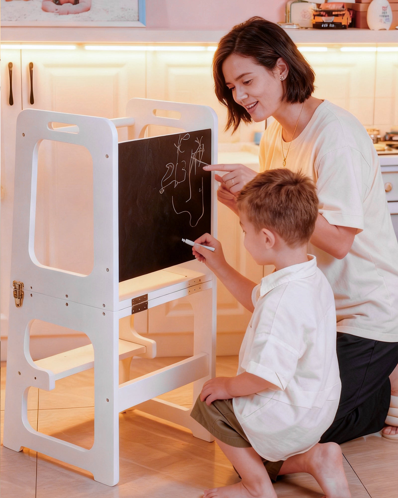Integrated Blackboard for Creativity: The built-in blackboard encourages drawing, writing, and imaginative play—adding an educational dimension to this versatile step stool